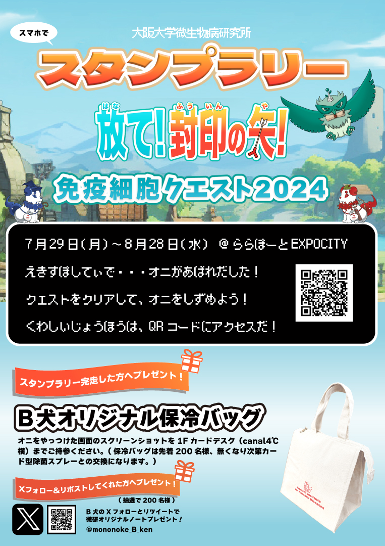 スタンプラリーでは、樹状細胞が伝令JUJO、JUJOの頭についているアンテナがToll様受容体、ヘルパーT細胞がT犬、B細胞がB犬です。